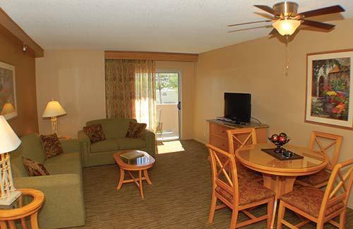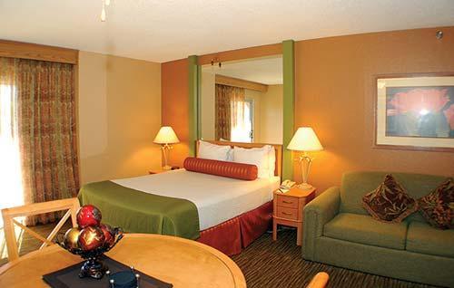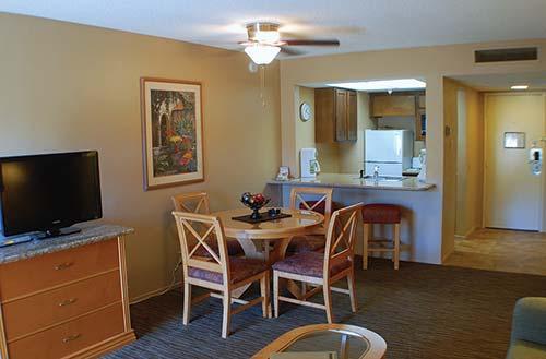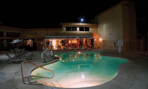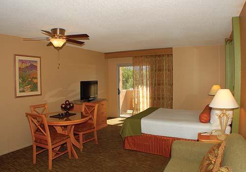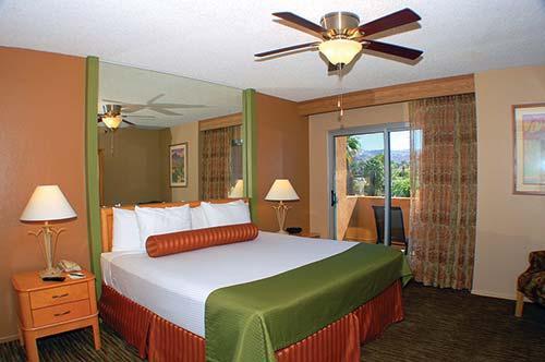 Located on the Tahquitz Creek Golf Course, The Plaza offers year-round golf and tennis. Accommodations are in a three-story building with an elevator. There are two pools, two whirlpool spas, and a sauna on the premises. Excellent shopping is nearby. The resort is a two-hour drive from Los Angeles and 90 minutes from mountainous areas. Dining choices are exceptional. Knott's Soak City U.S.A. water adventure park is approximately 1 mile (1.6 kilometers) away, and Boomers Park is within a five-minute walk. The resort is pet friendly with a fee.