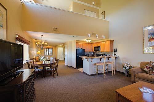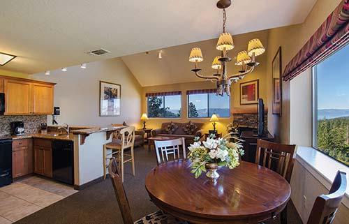 Located at 7,300 feet (2,225 meters), The Ridge View offers a rooftop whirlpool spa and accommodations with spectacular Lake Tahoe views. Guests have full access to the Ridge Club amenities at The Ridge Tahoe, located just minutes away via complimentary transportation. Each suite is designer-appointed, with a fully equipped granite kitchen, gas fireplace, Sleep Number bed, and flat-screen televisions with DVD. Amenities include a billiard room and barbecues. The Heavenly Ski Resort Stagecoach chairlift is less than a mile (1.6 kilometers) away via resort shuttle. The resort does not have air conditioning.