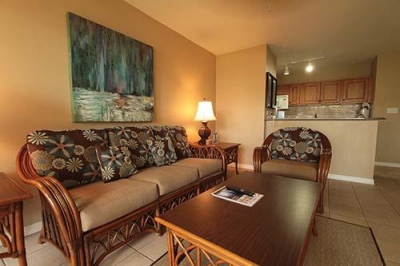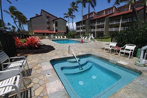 Kapaa Shore features an expansive, 40-foot (12 meters) swimming pool and heated whirlpool nestled amidst tropical grounds. Tennis, shuffleboard, and barbecue grills are also provided. Restaurants are within walking distance and feature a variety of cuisine, from fast-food Chinese to Italian to Mexican. Kapaa Shore sits on a coral beach with beautiful churning waves and high tides. Nearby, the Coco Palms area provides one of the island's smoothest white-sand beaches for swimming.