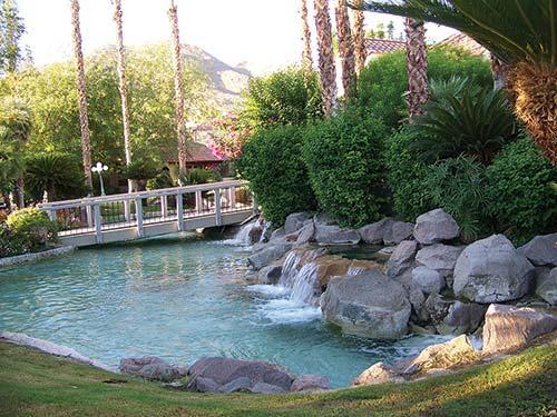 Surrounded by peaceful mountains, Palm Springs enjoys a dry, temperate climate with year-round sunshine. The Oasis condominiums boast California-style interiors, with air conditioning, washer and dryer, television, and fully equipped kitchen with dishwasher, range, microwave, and barbecue on the patio. Guests will enjoy tennis, nearby golf, and the hotel's eight swimming pools and nine whirlpools. Wet 'n' Wild water park is just five minutes away and has a wave pool, water slides, raft rides, and the Tidal Wave Tower.