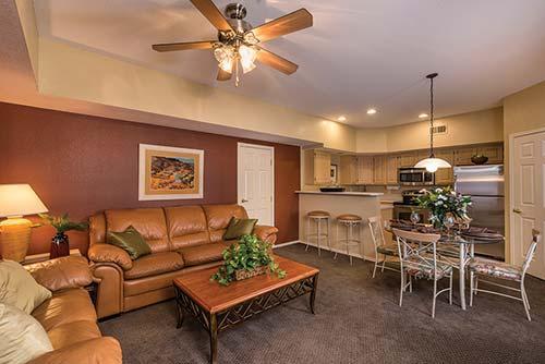Nestled within the Sonoran Desert, Westgate Painted Mountain Golf Resort is a beautiful, desert-landscaped resort located adjacent to the world-famous John Jacobs' Golf School, which features an 18-hole course. Guests enjoy scenic views and spacious villas, most with fully equipped kitchens, whirlpool tubs, and balconies or patios. On-site amenities include a heated outdoor pool, two hot tubs, a fitness room, steam room, volleyball and basketball courts, and a playground. The resort lies just 17 miles (27 kilometers) from Saguaro and Canyon lakes, offering easy access to water sports.